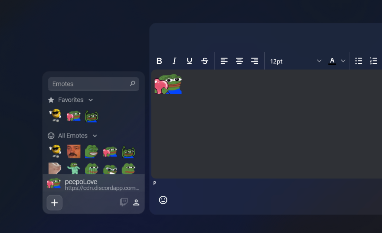 You can now use emotes in your posts! Create your own emotes or use premade popular Twitch Emotes.